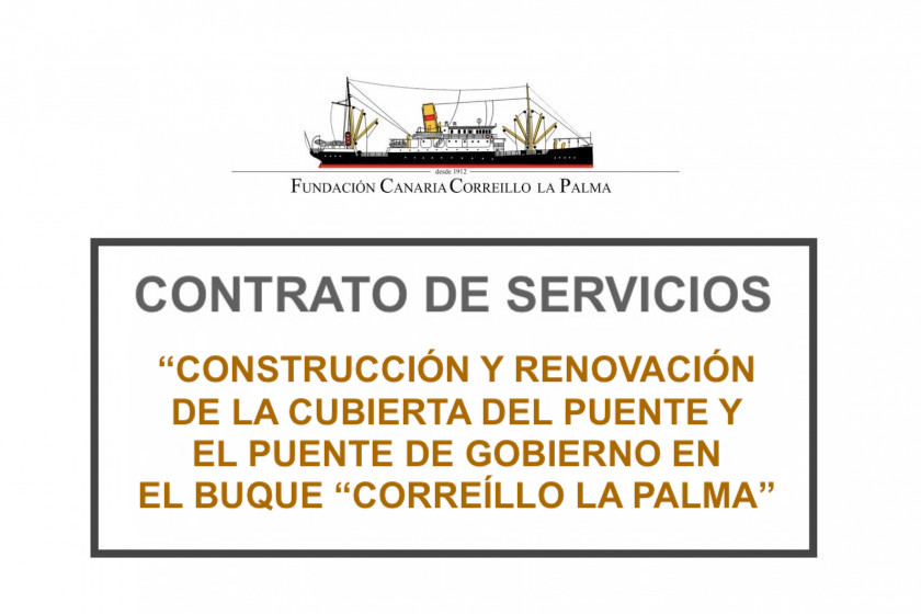 CONTRATO DE SERVICIOS: “CONSTRUCCIÓN Y RENOVACIÓN DE LA CUBIERTA DEL PUENTE Y EL PUENTE DE GOBIERNO EN EL BUQUE “CORREÍLLO LA PALMA”, CONTRATACIÓN MEDIANTE PROCEDIMIENTO ABIERTO (SUJETO A REGULACIÓN ARMONIZADA) Contrato con número de Expediente 1/2022.